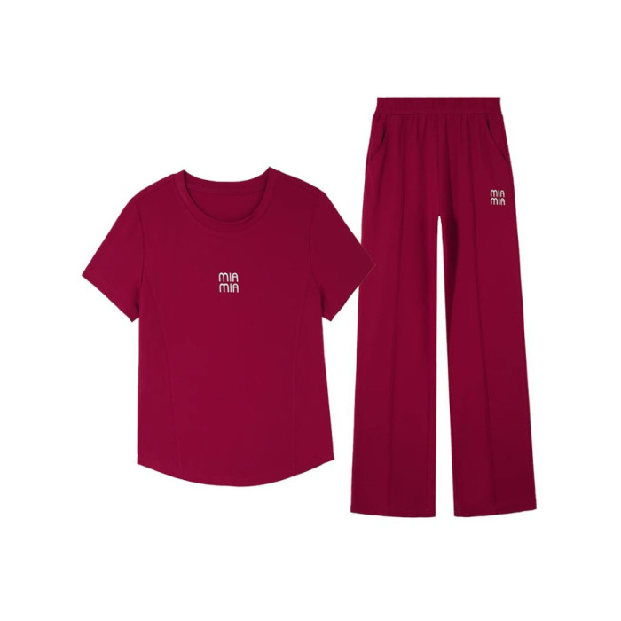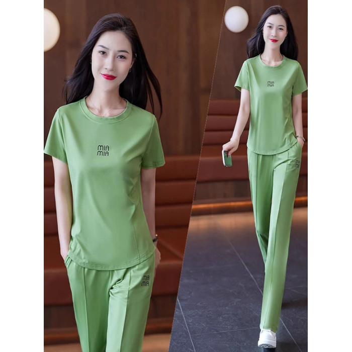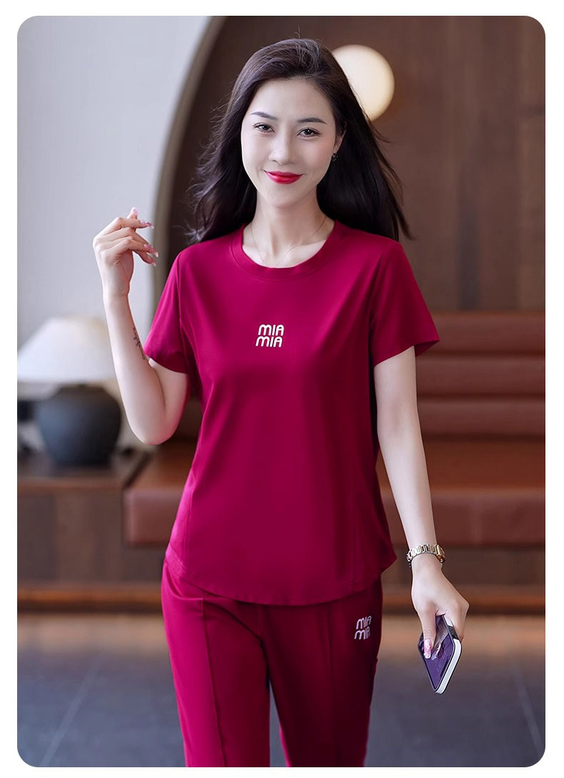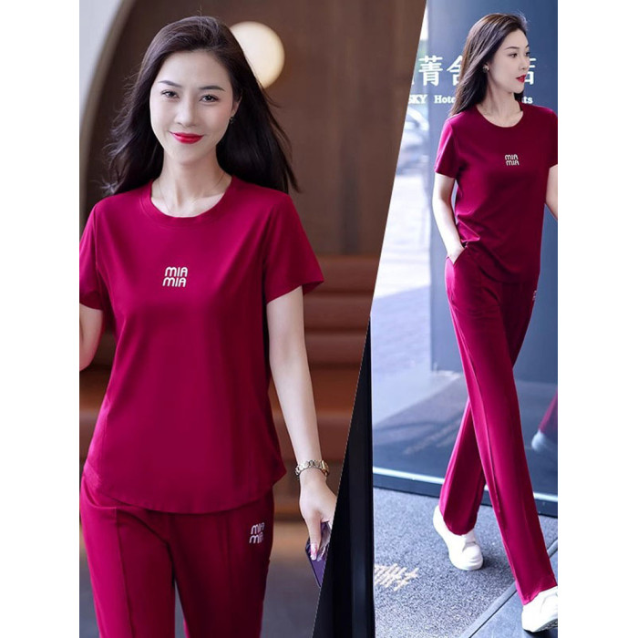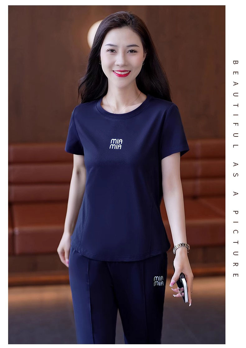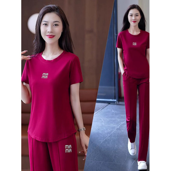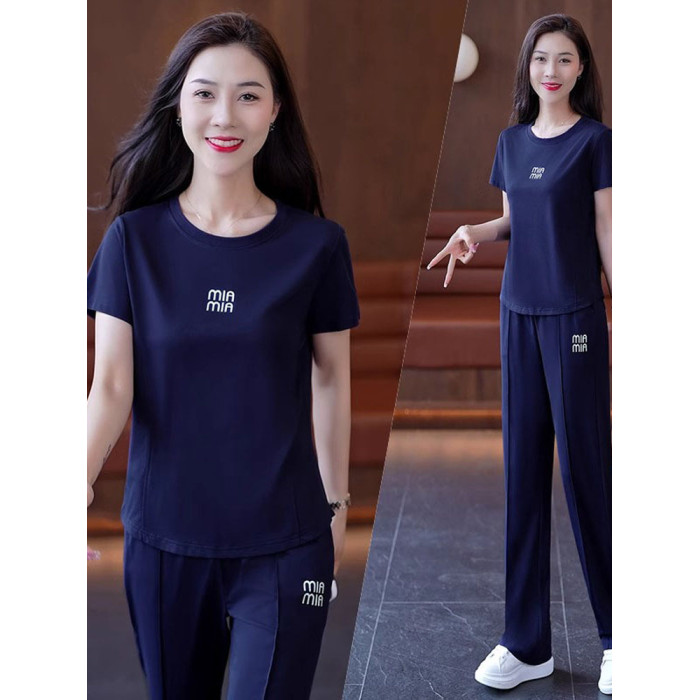 日本時尚冰絲休閒服兩件套夏裝短袖運動套裝女夏季新款中年媽媽裝