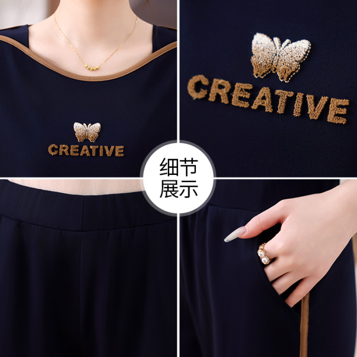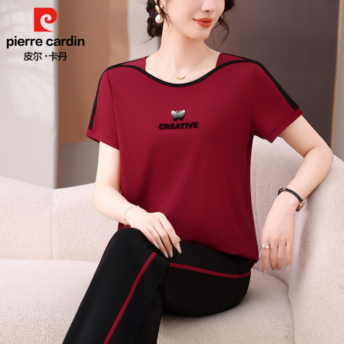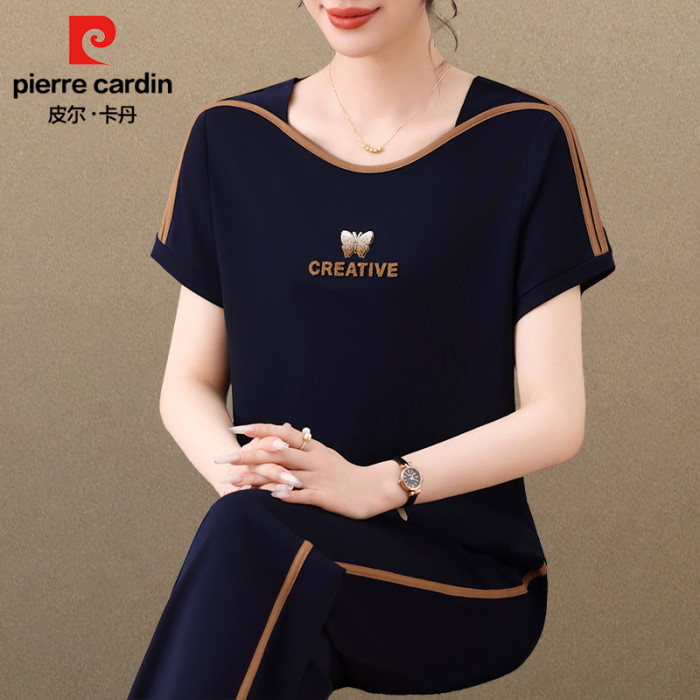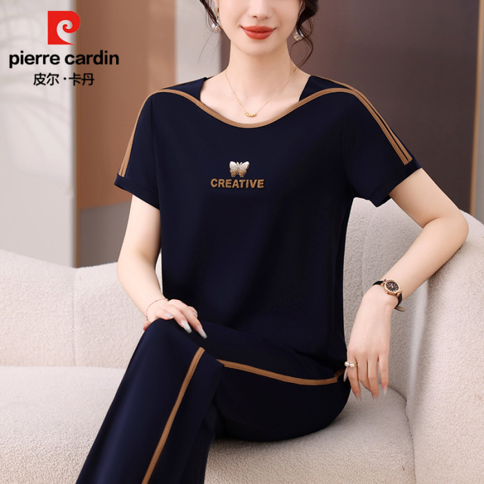 皮爾卡丹品牌休閒運動套裝女新款2025夏季時尚純色簡約透氣兩件套