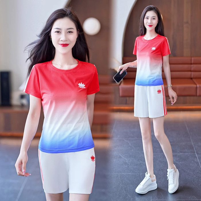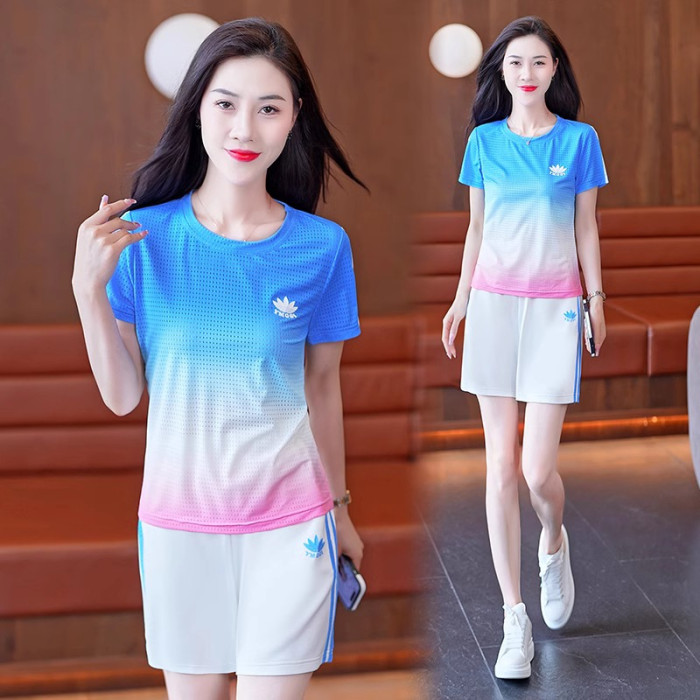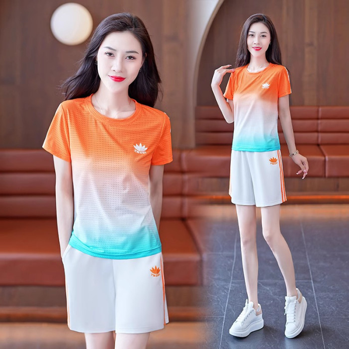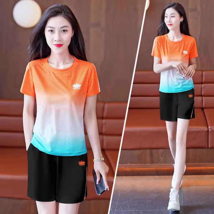 冰絲速乾五分褲運動套裝女士2025新款夏季短袖短褲跑步羽毛球兩件