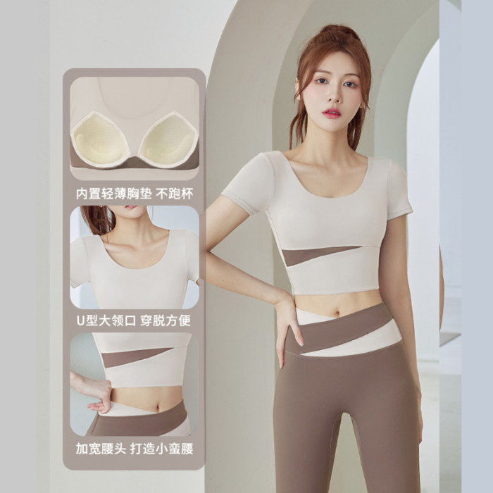 瑜伽服緊身顯瘦跑步運動套裝女短袖2025夏季新款健身普拉提訓練服