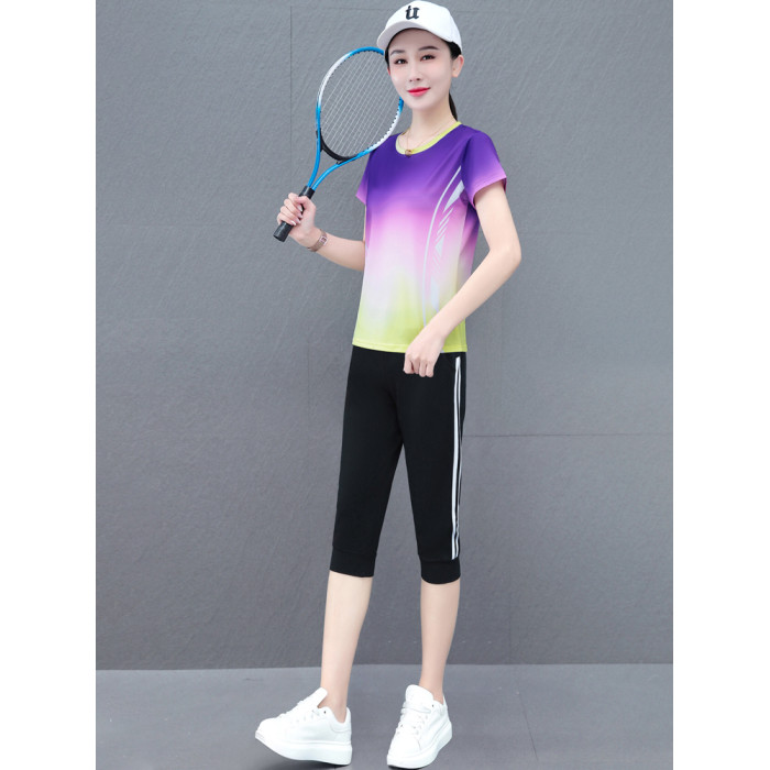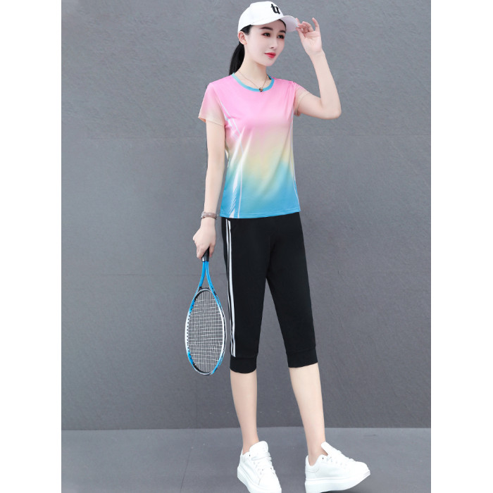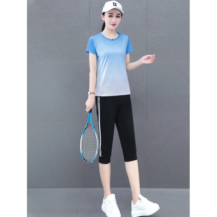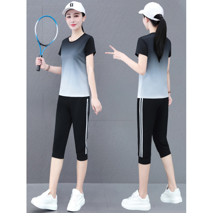 冰絲速乾運動套裝女夏季薄款跑步服新款大碼胖mm寬松七分褲兩件套