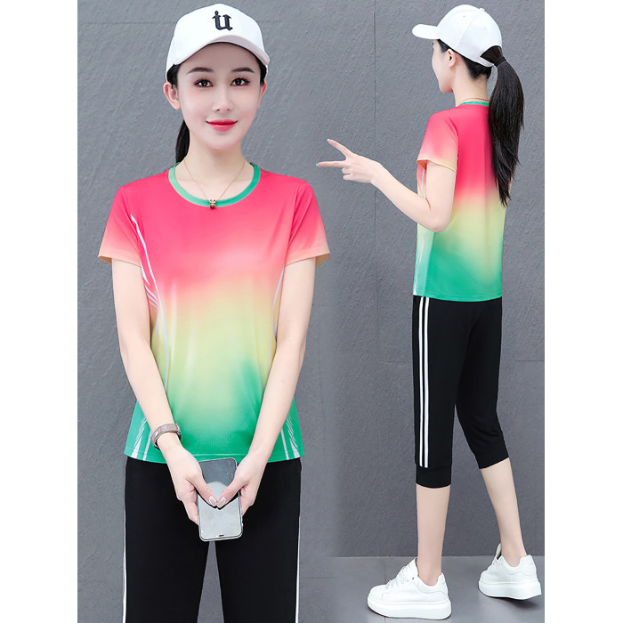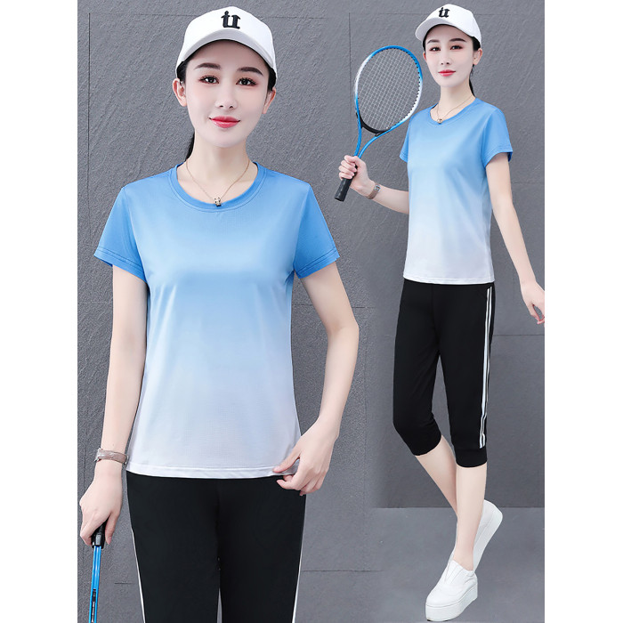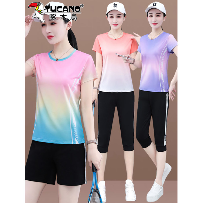 啄木鳥冰絲運動套裝女士夏季2025新款晨跑服速乾衣短袖短褲兩件套