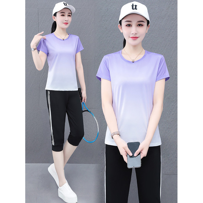 淺紫色【七分褲套裝】 短袖T恤+七分褲