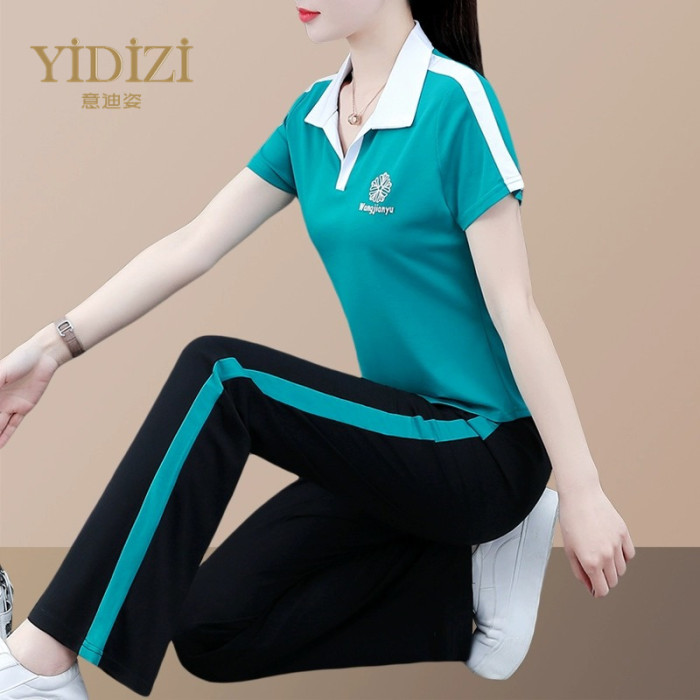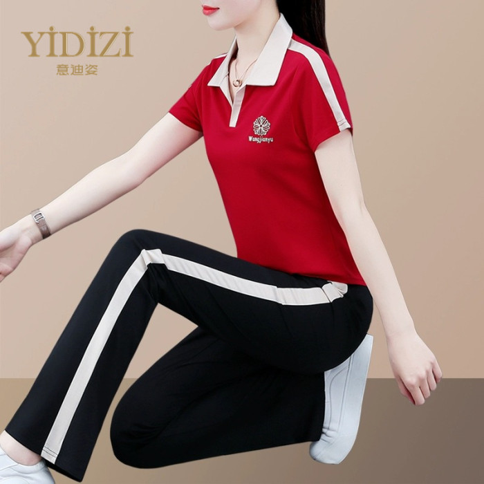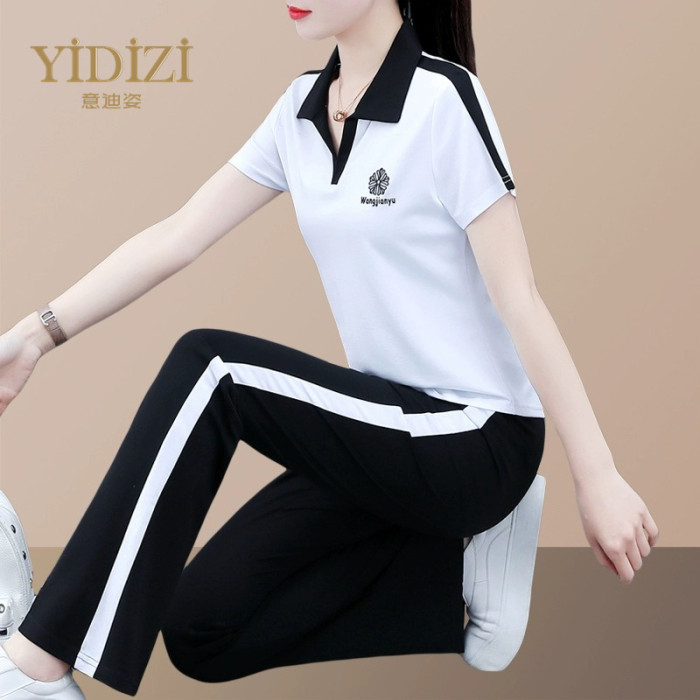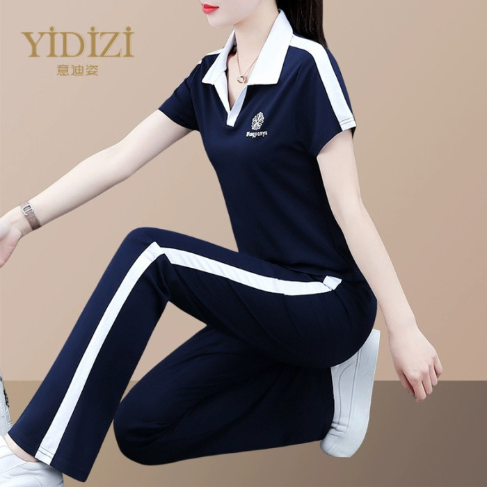 冰絲薄款休閒運動套裝女夏季2025新款時尚翻領POLO襯衫透氣兩件套