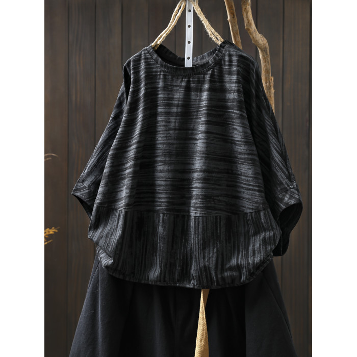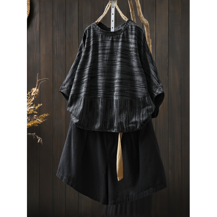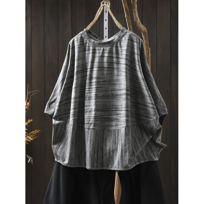 蝙蝠袖灰色短袖女t恤2025新夏寬松遮肚子圓領氣質短款設計感上衣