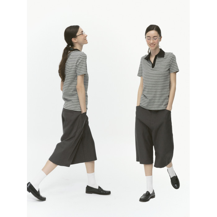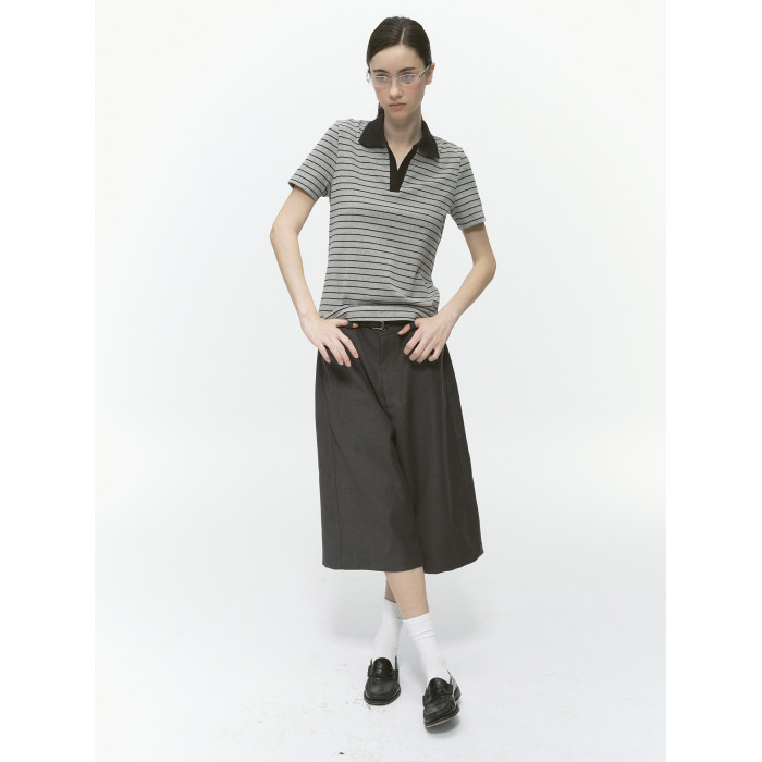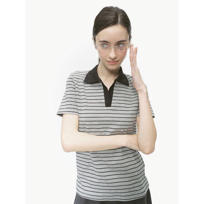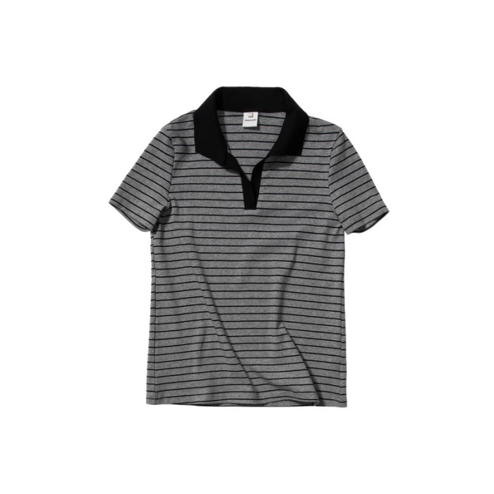 CountryMoment 220G混紡針織條紋polo衫美式復古正肩短袖女T恤夏