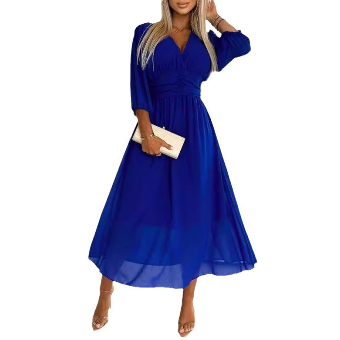 歐美連衣裙2024女裝收腰顯瘦大擺性感裙子
