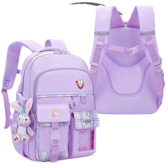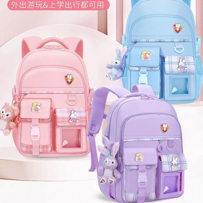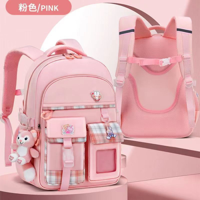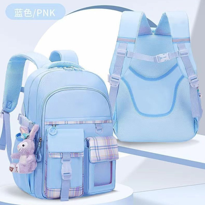 24新款女生書包136年級格子女孩輕便兒童護脊減負分散壓力配胸釦