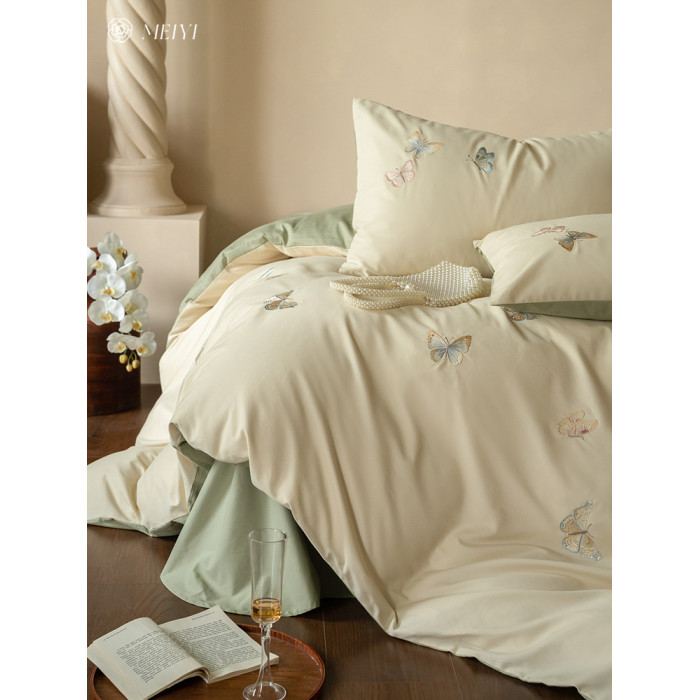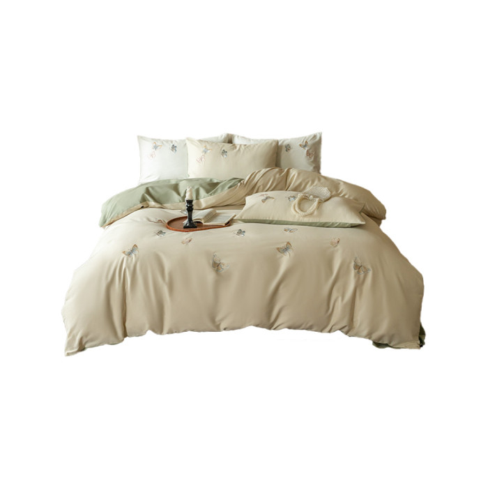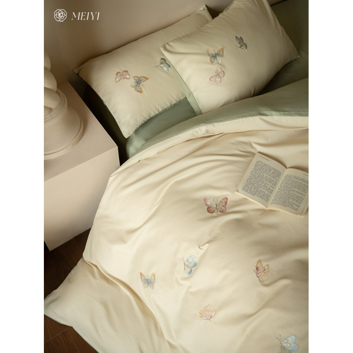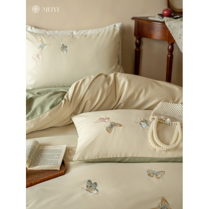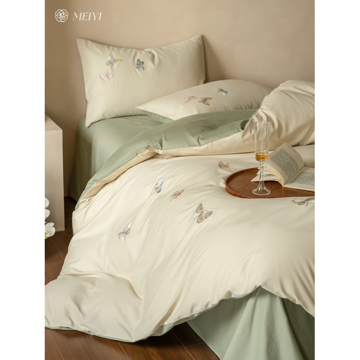 ins輕奢風秋冬超柔蝴蝶刺綉100S純棉磨毛單被套保暖加厚床上用品