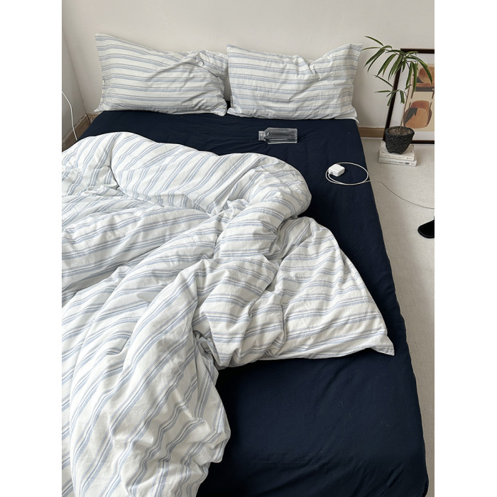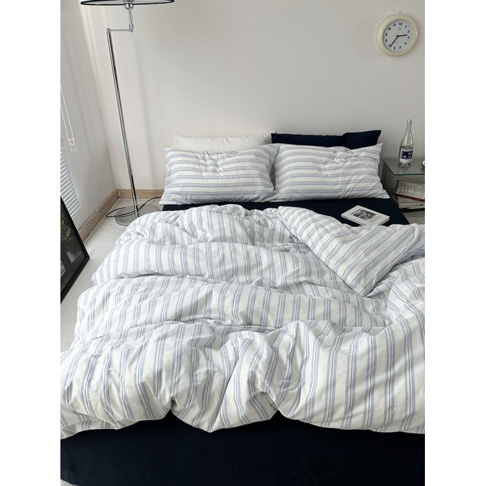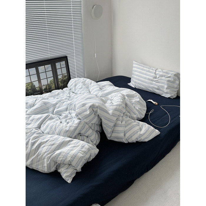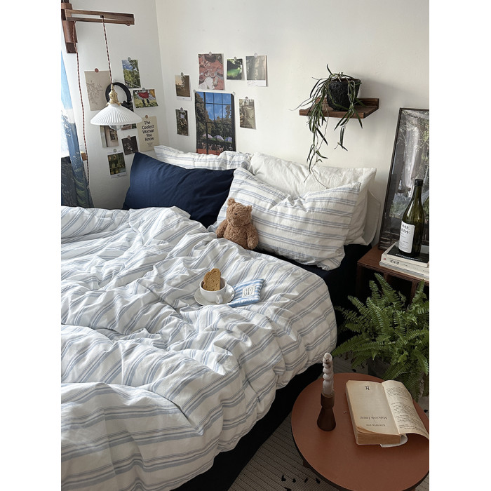 在耳邊簡約條紋全棉水洗棉單件被套ins碎花純棉精梳棉單雙人被罩