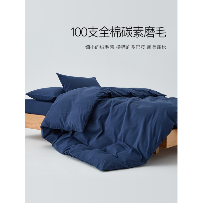 經典簡約深藍色A類碳素磨毛純棉被套四件套全棉貢緞藍色被罩男生