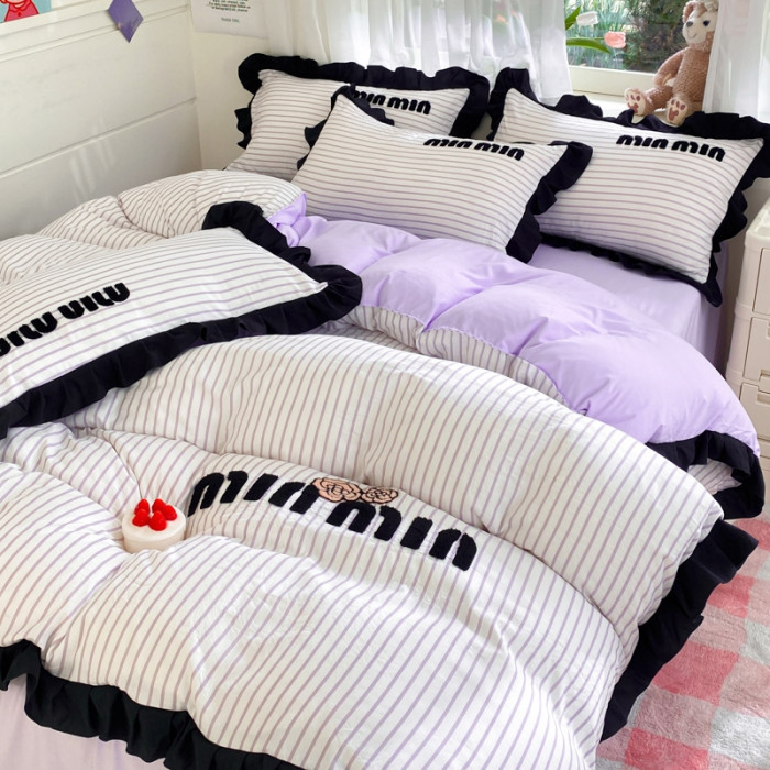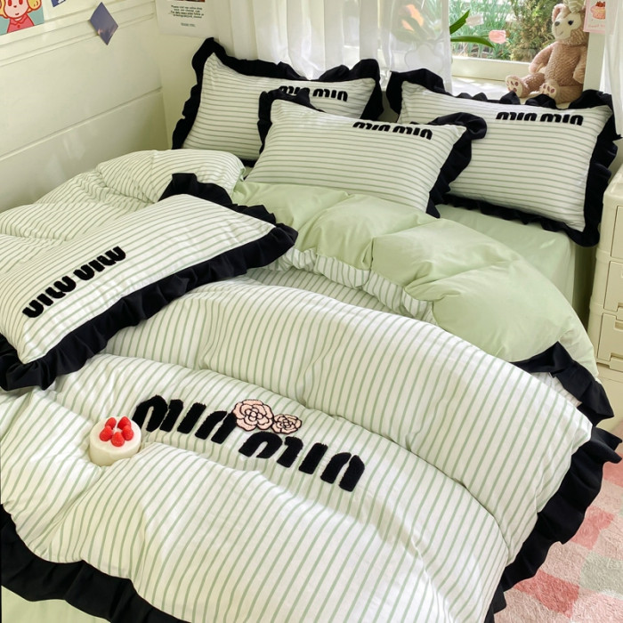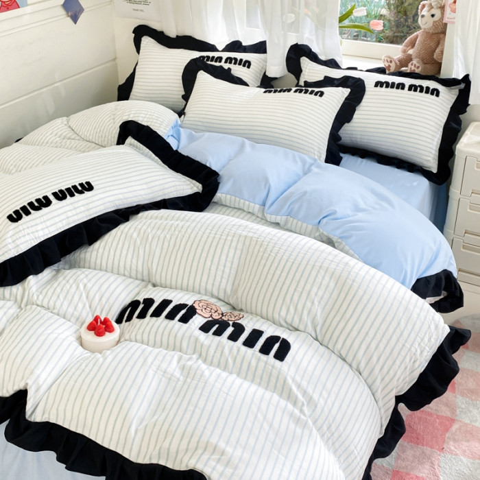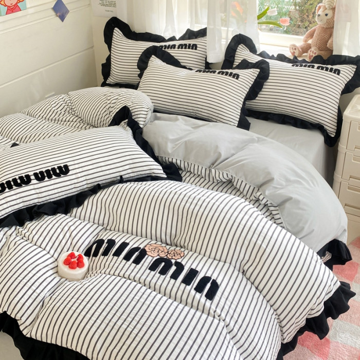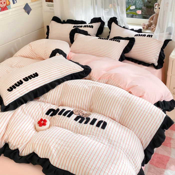 四件套純棉全棉2024新款條紋水洗棉公主風學生宿舍床單被套床笠款