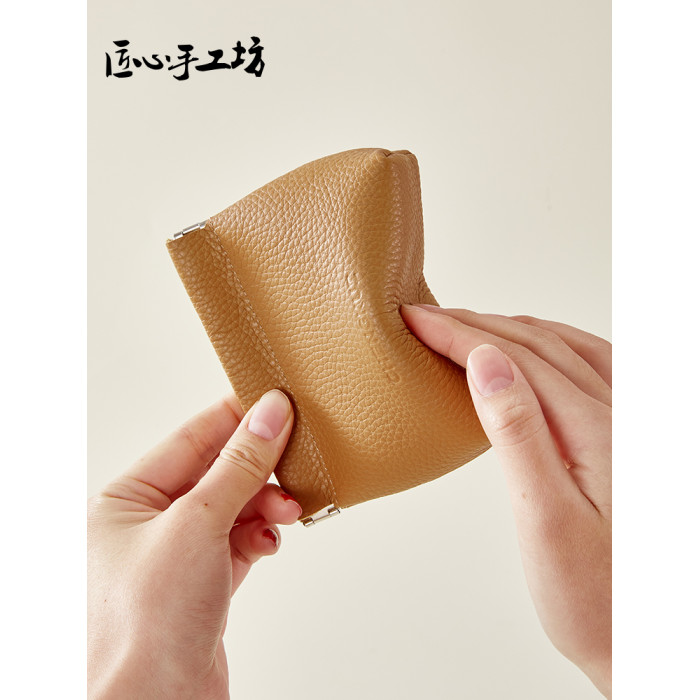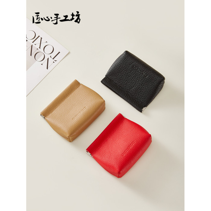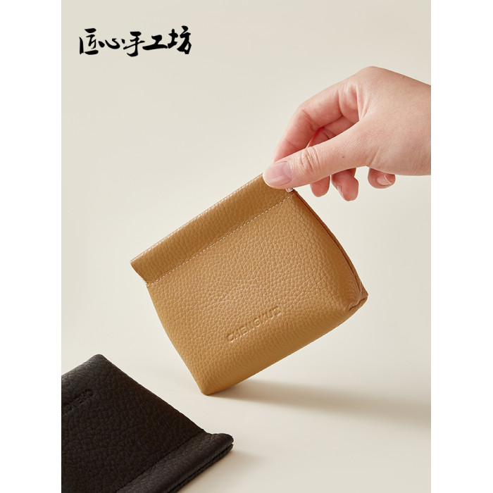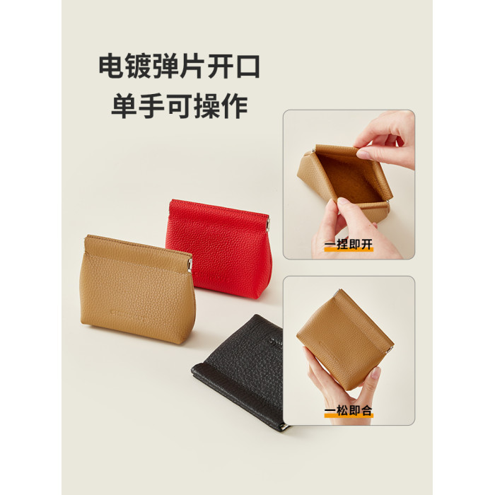匠心手工坊自動閉合收納包彈片可攜式小包數據線化妝高級真皮小方包