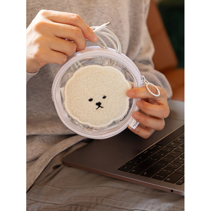 Dailylike刺綉小狗收納包韓國可愛透明防水耳機零錢襍物痛包掛件