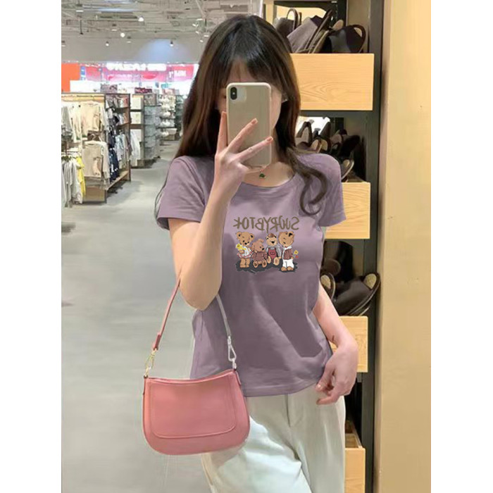 紫色正肩短袖t恤女2025新款好看獨特漂亮高級設計感修身小衆上衣