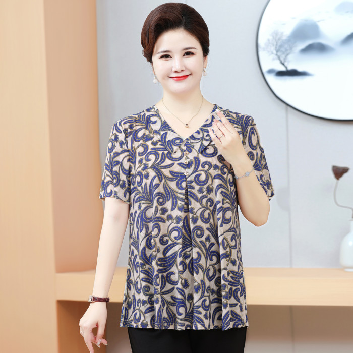 胖媽媽夏裝加肥奶奶裝特大碼短袖老人洋氣遮肚子中老年女T恤上衣