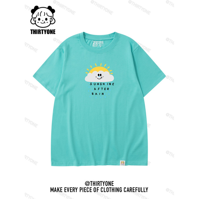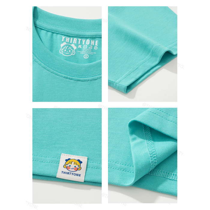 Thirty one 湖藍色正肩女t恤小個子原創潮牌短袖可愛甜美日系上衣