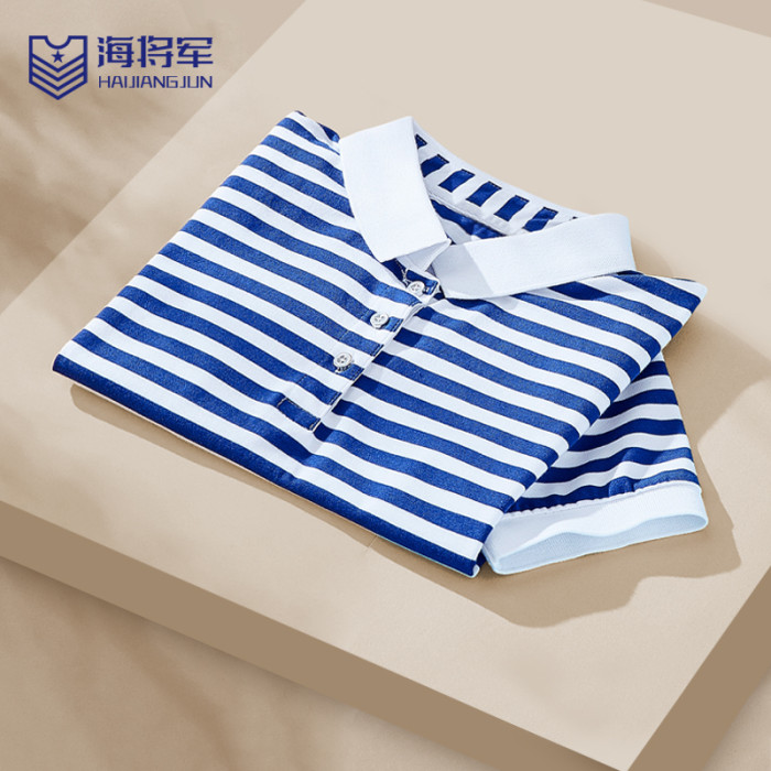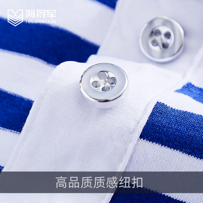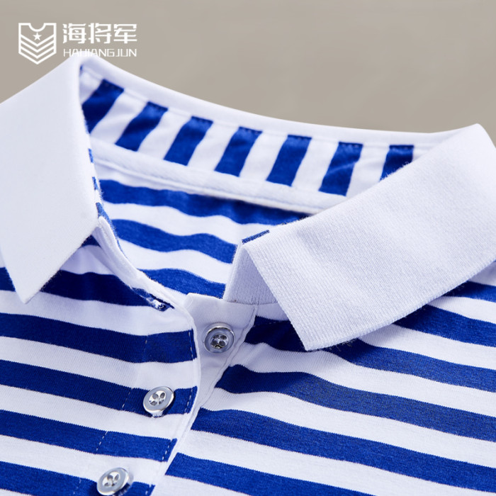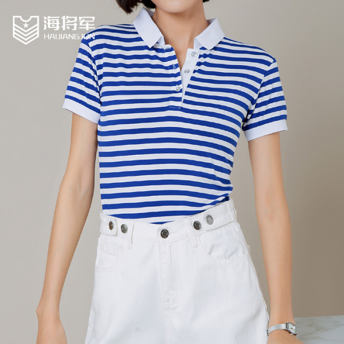 海將軍藍白翻領條紋修身polo衫女t恤短袖針織海魂衫夏季2025新款