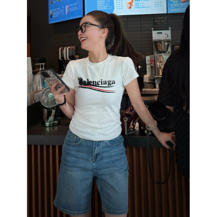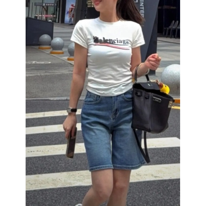 美式復古白色印花短袖女t恤2025新款別致漂亮顯瘦正肩氣質上衣潮