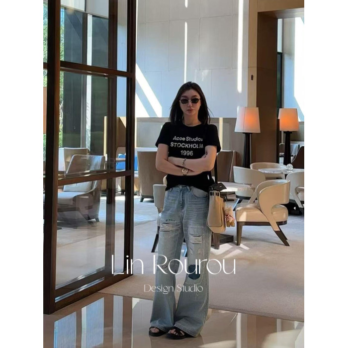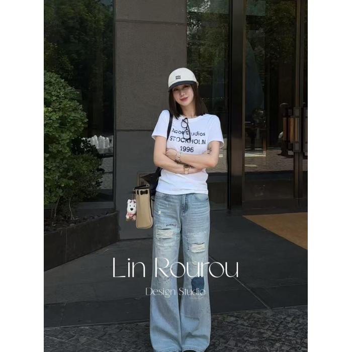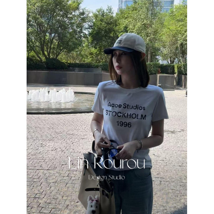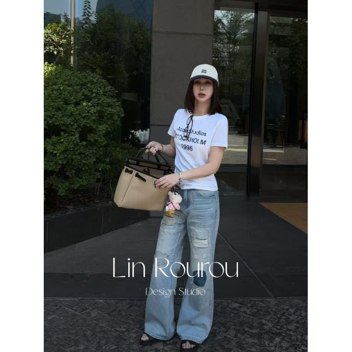 林肉肉【做舊字母短袖】短袖女t恤2025新款夏季正肩上衣