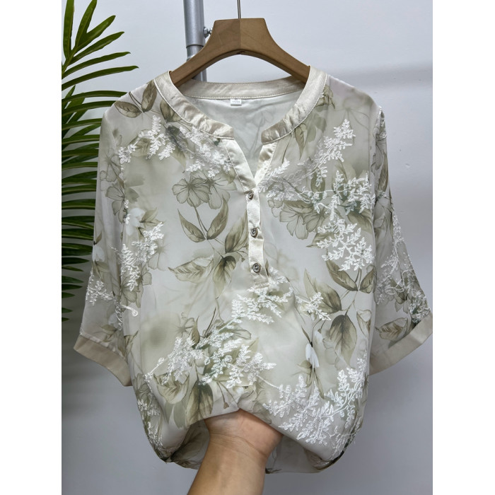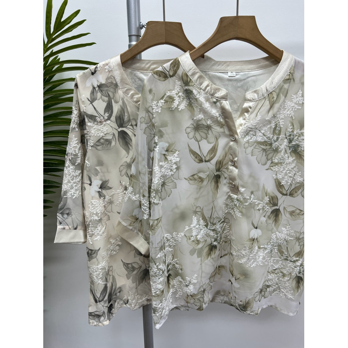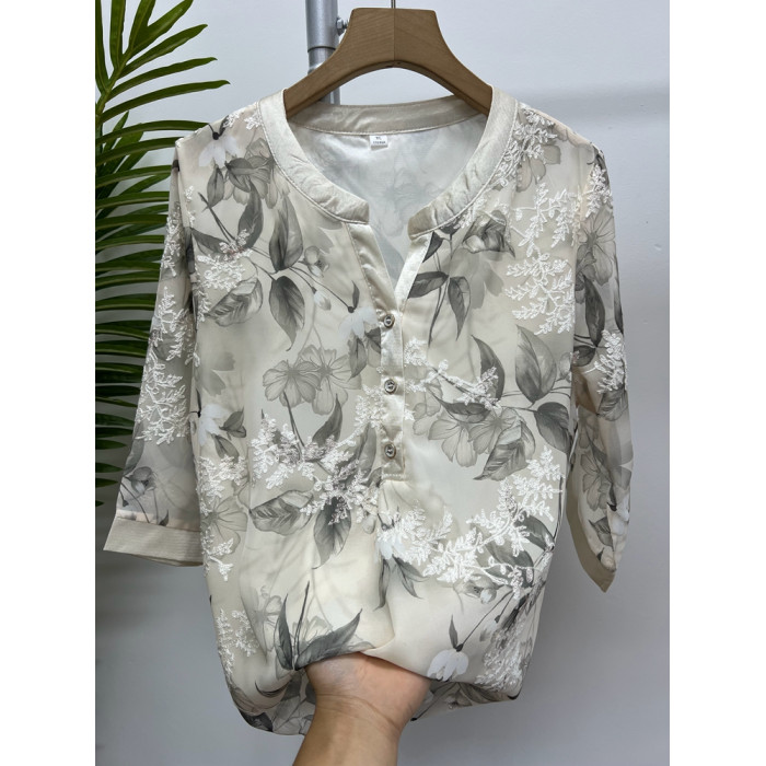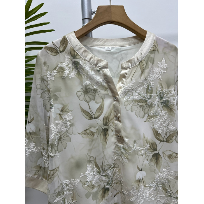 高級媽媽夏裝新款雪紡襯衫短袖薄款上衣4050嵗婦女T恤中老年小衫