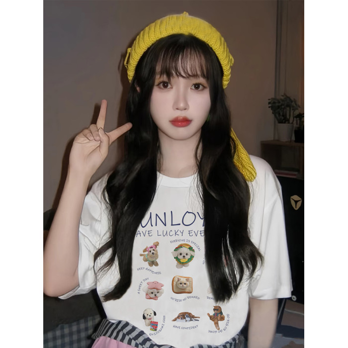 明星甜妹虞書訢同款短袖女t恤2025新款夏季寬松洋氣獨特別致上衣