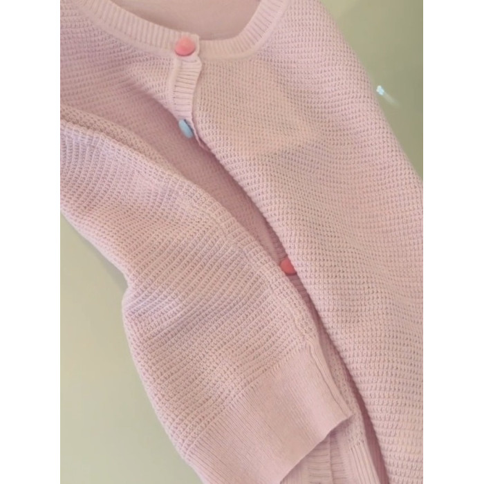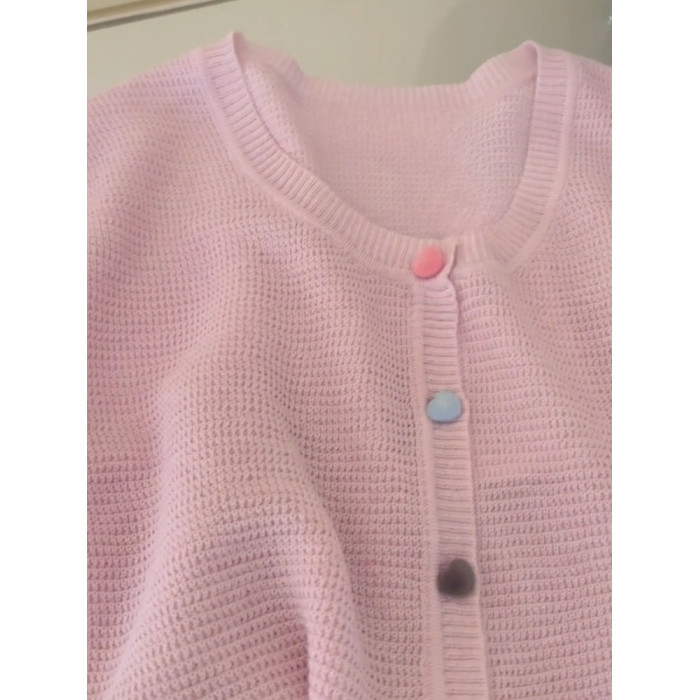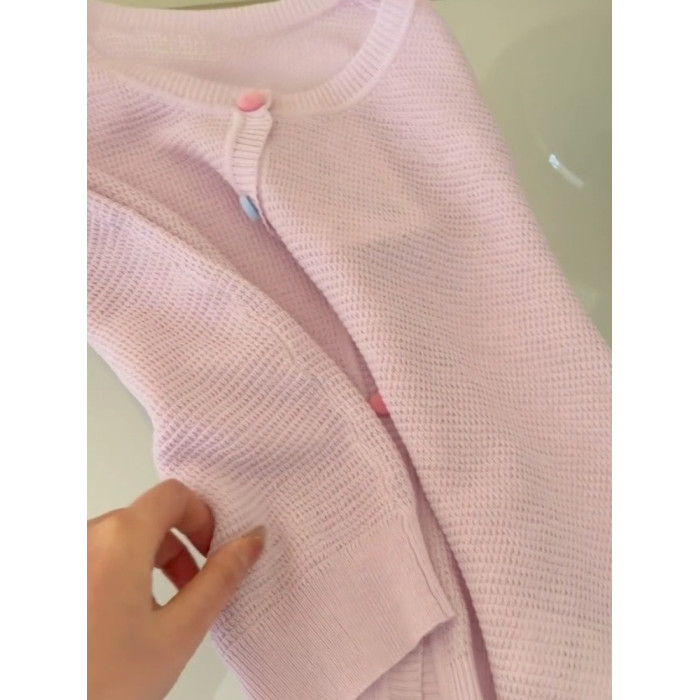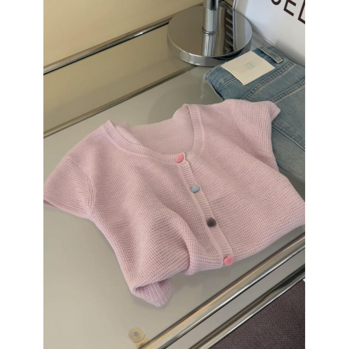 2025超火減齡獨特漂亮的小上衣粉色彩釦冰絲正肩女士飛飛短袖t恤