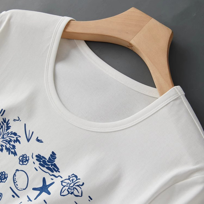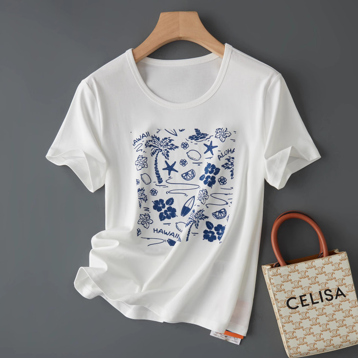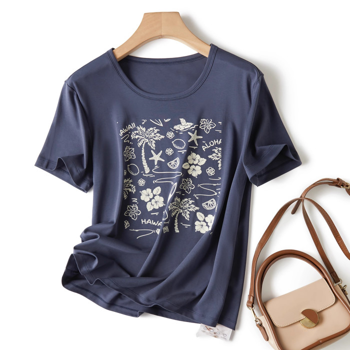 立體植絨花夏季輕薄透氣涼感穿搭短袖女t恤2025新款圓領正肩上衣