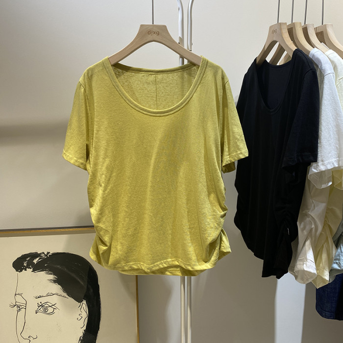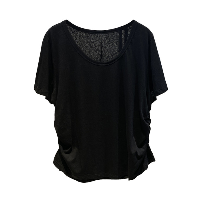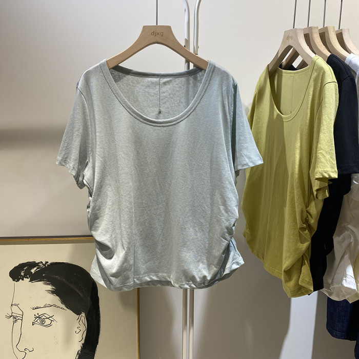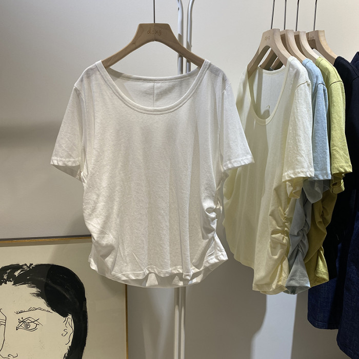 重磅牛貨~洋氣時髦百搭圓領套頭雪花棉打底衫褶皺短袖女t恤上衣薄