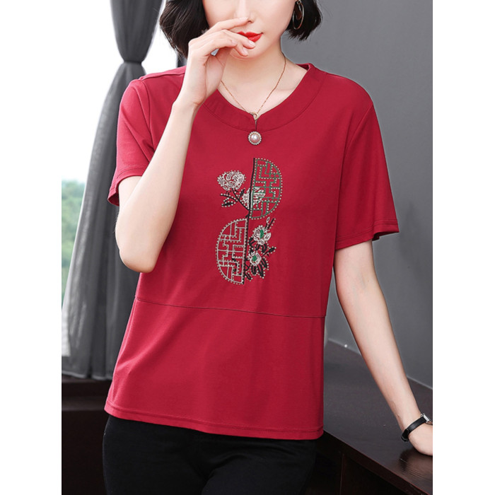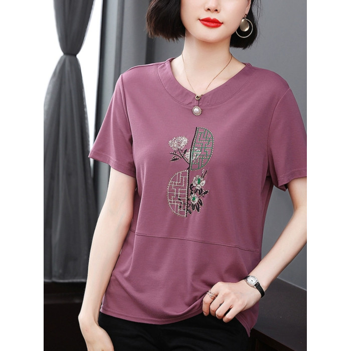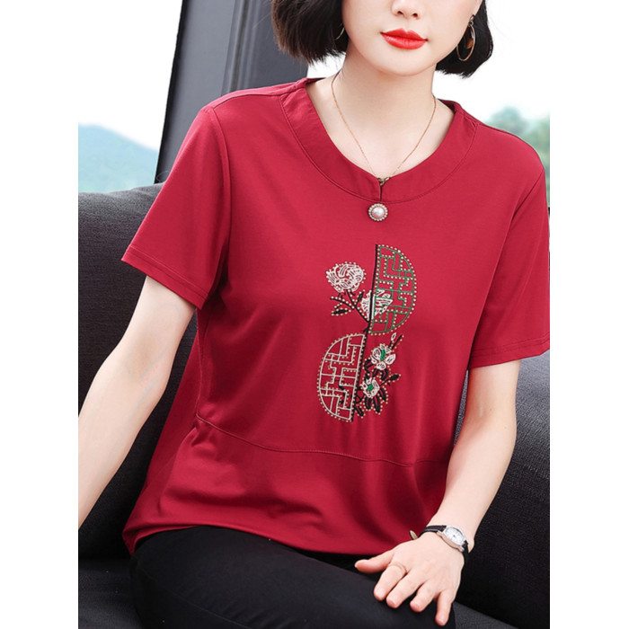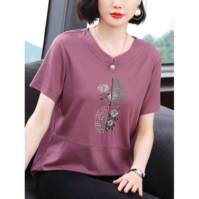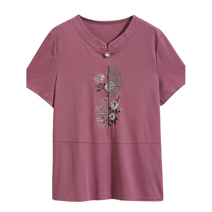 中老年女t恤短袖寬松遮肚大碼中年媽媽夏裝洋氣減齡上衣純棉小衫