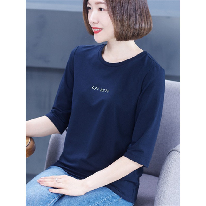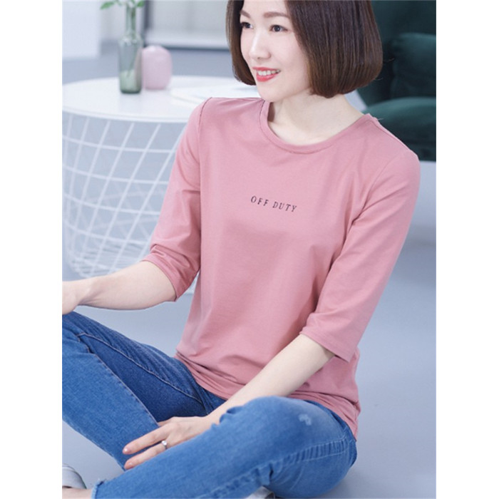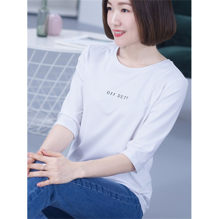 莫代爾棉中袖中年女T恤寬松大碼薄款七分袖打底衫媽媽款春秋上衣