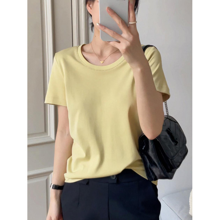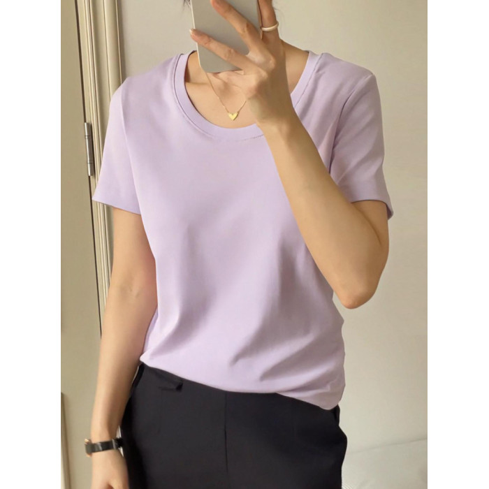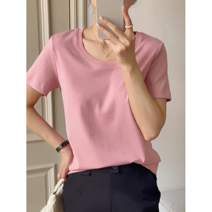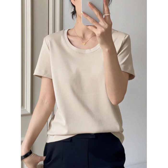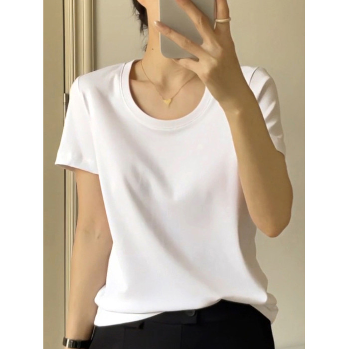 糯米棉小U領短袖女t恤2025新款夏季正肩白色寬松純棉氣質女士上衣