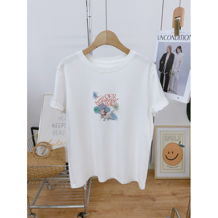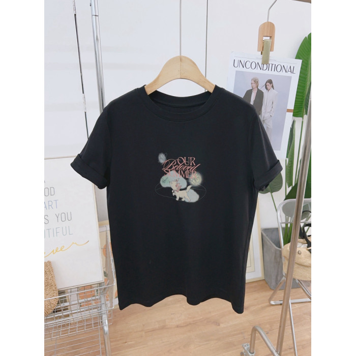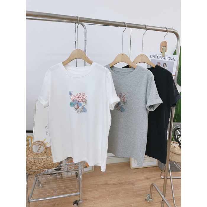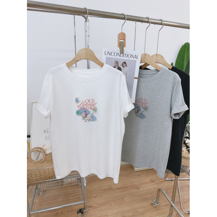 夏季短袖女t恤2025新款純棉灰色洋氣上衣卡通印花減齡學生半袖潮