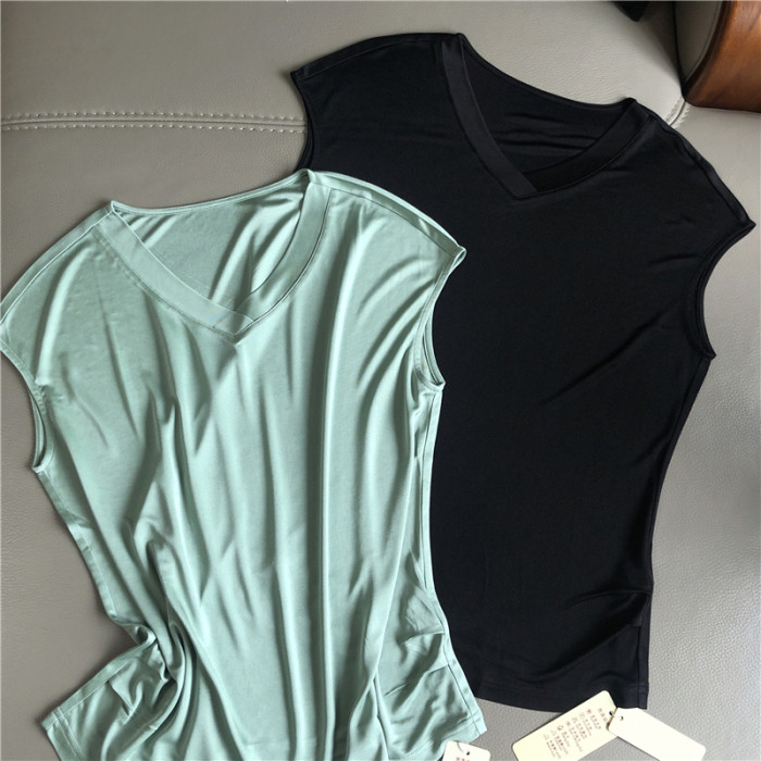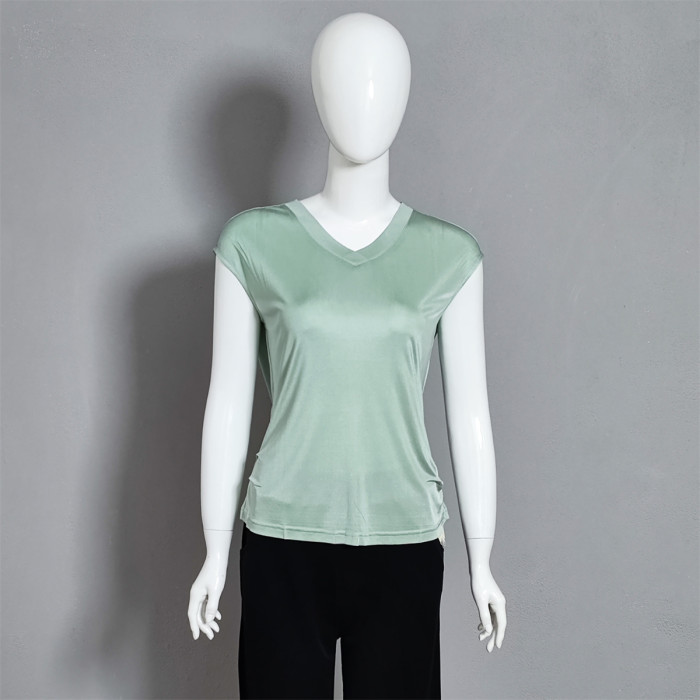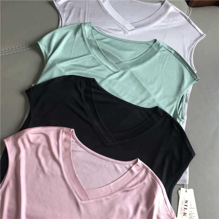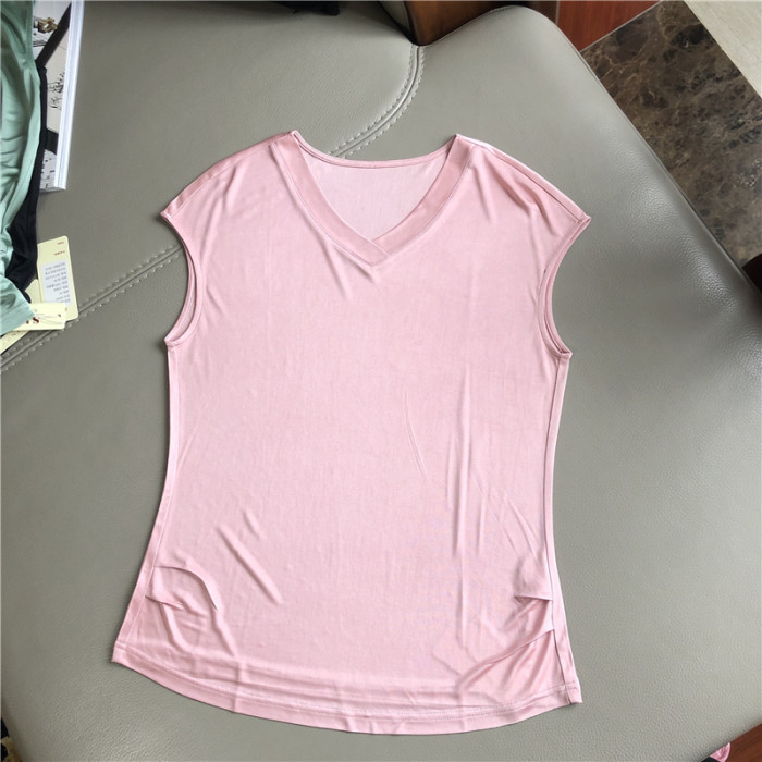 特價品質好 寬松純色針織真絲V領簡約女T恤短袖上衣蠶絲小衫S2007