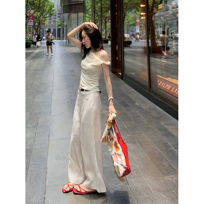 TS SHOP 韓裡韓氣設計感露肩上衣女輕熟小衆不撞款短袖女t恤2025