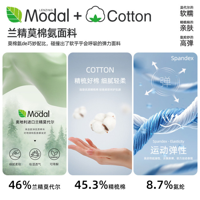 莫代爾纖維(莫代爾)46% 棉45.3% 聚氨酯彈性纖維(氨綸)8.7%