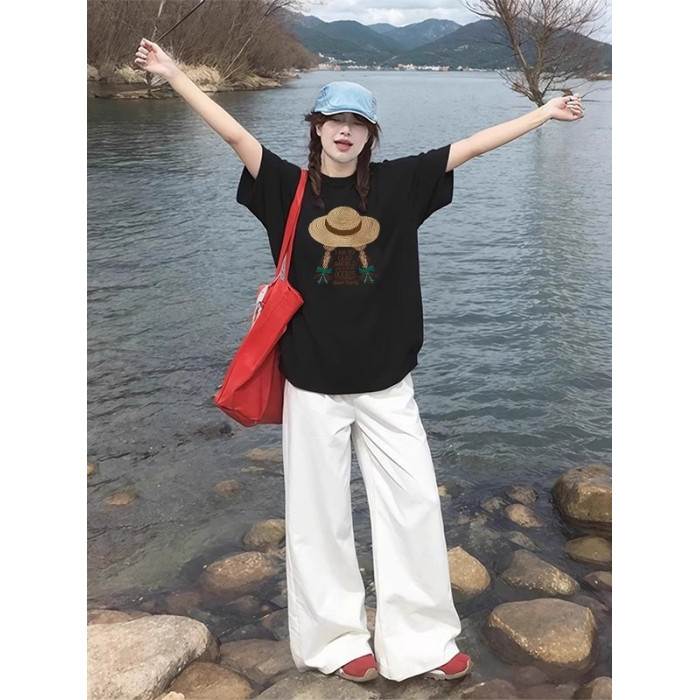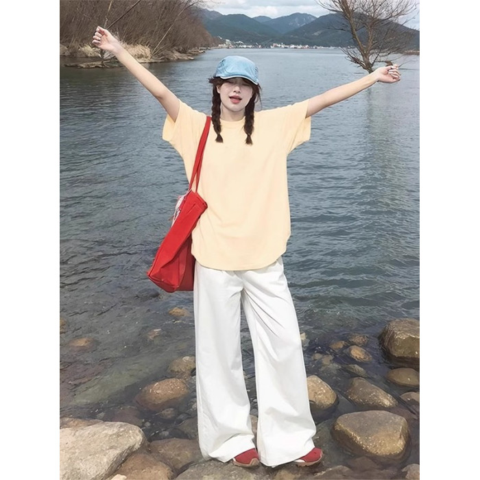 白色短袖女t恤女裝2025夏季新款高級歐貨韓版寬松百搭半袖小上衣