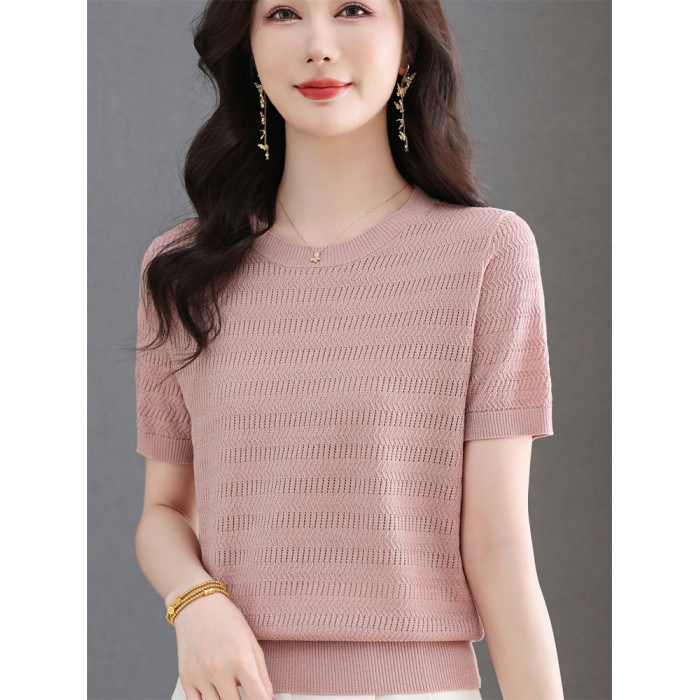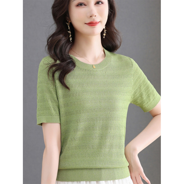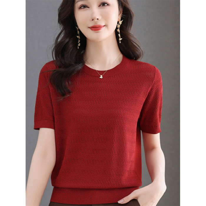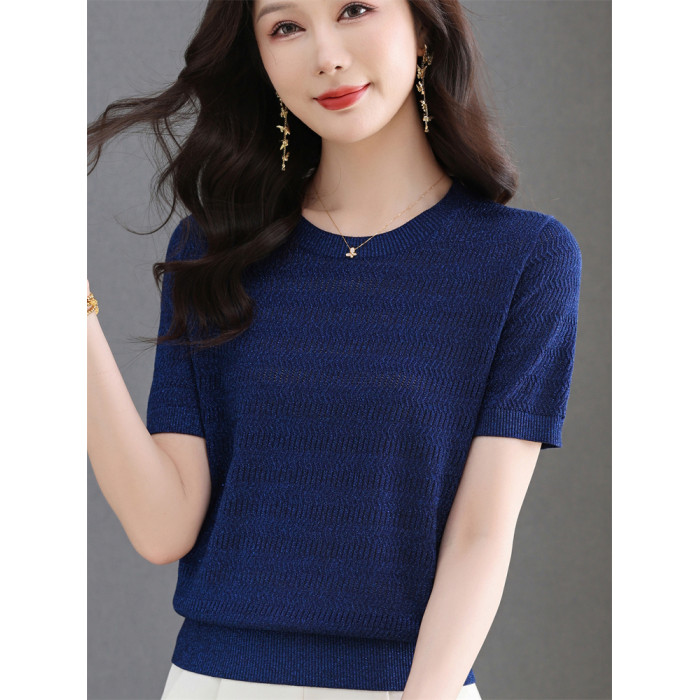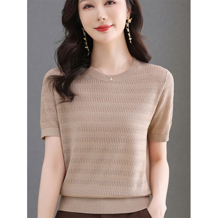 桑蠶絲圓領款正肩女t恤短袖2025新款洋氣遮肚子時尚上衣媽媽冰絲