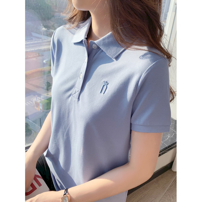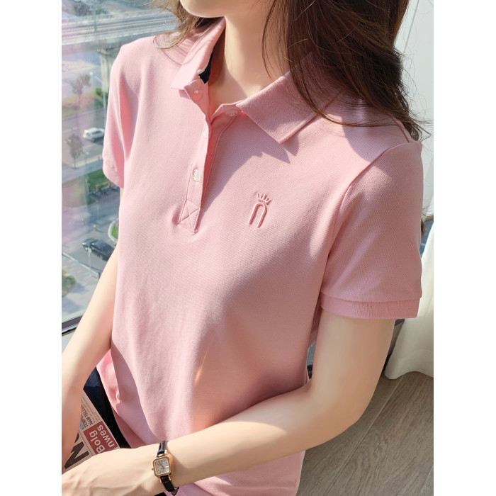 夏季polo衫女t恤短袖女新款珠地棉修身顯瘦工裝職業襯衫團體上衣