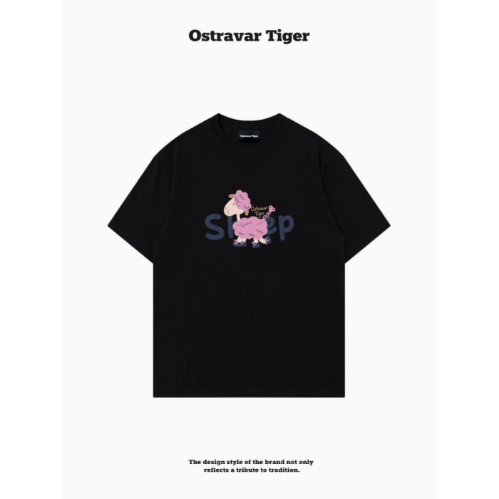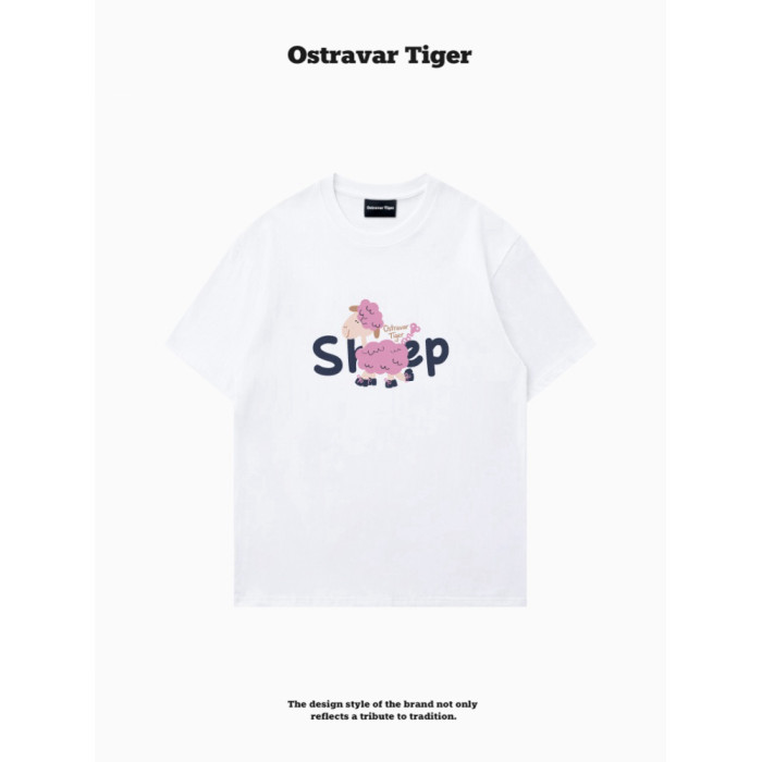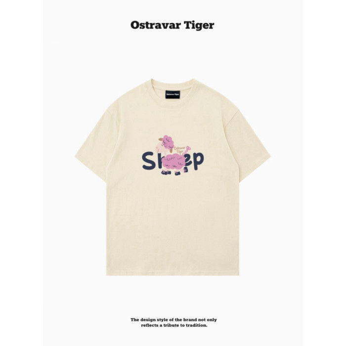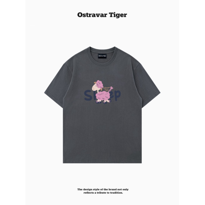 專櫃新款 Ostravar Tiger潮牌2025夏手繪慵懶風寬松純棉短袖女t恤