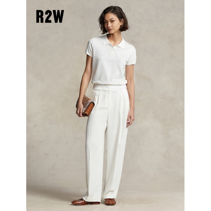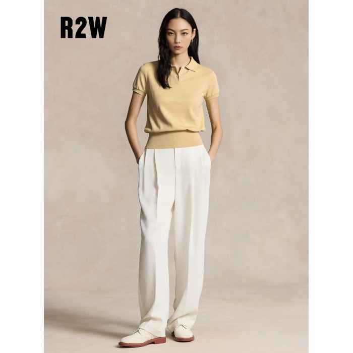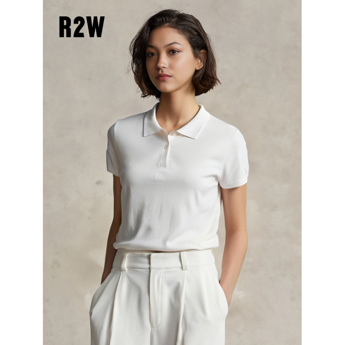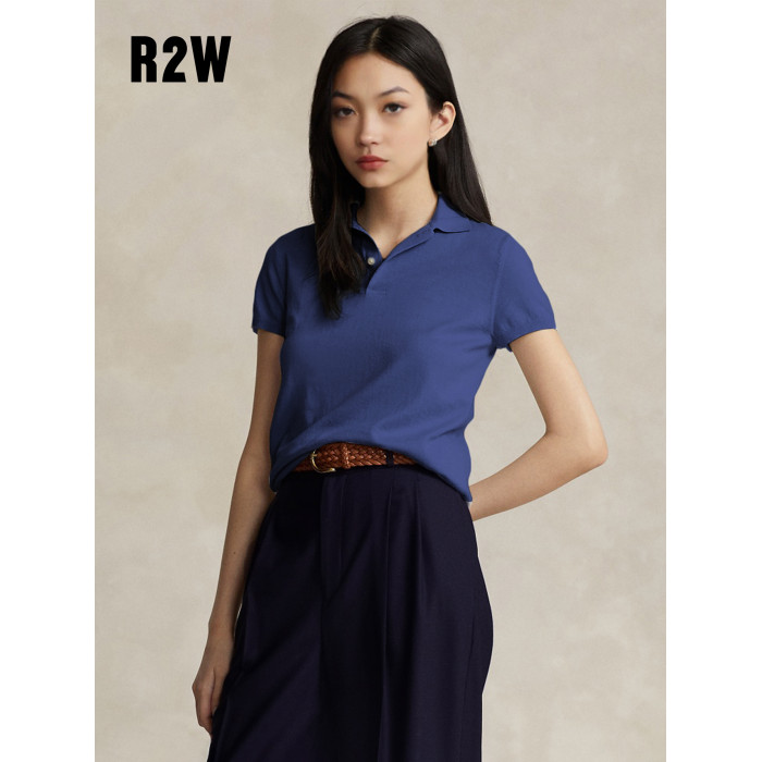 RTW美式復古polo領女t恤短袖夏收腰藍色純棉休閒通勤薄針織衫上衣