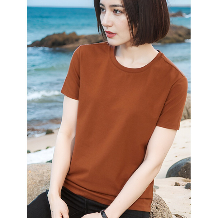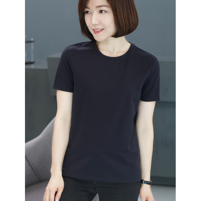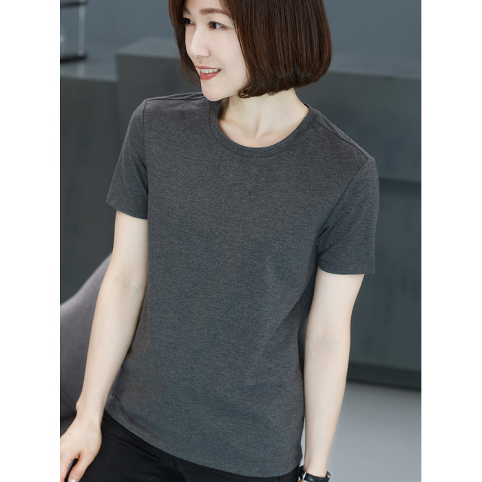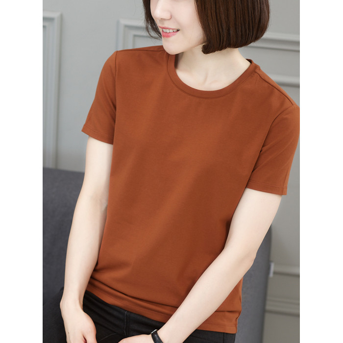 橫行道微胖上衣新款遮肚純棉純色中年大碼媽媽短袖女T恤寬松體恤