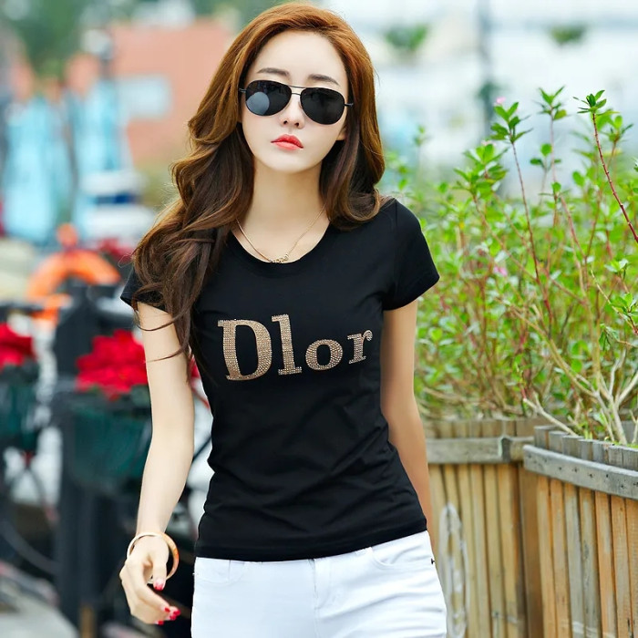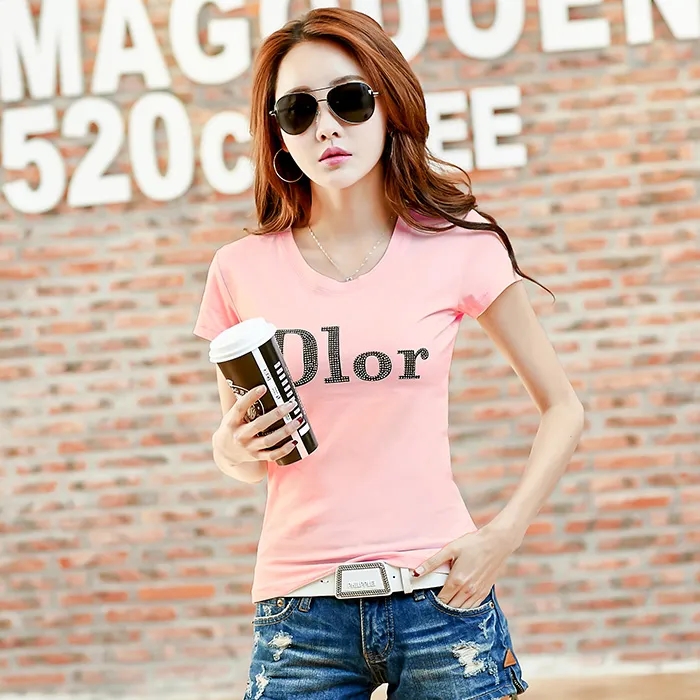 %95棉優質短袖女T恤緊身上衣韓版燙鑽修身打底衫時尚夏季小衫彈力