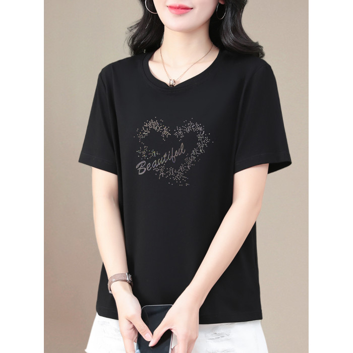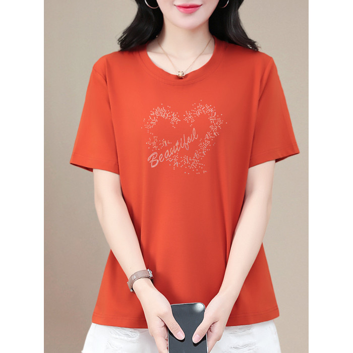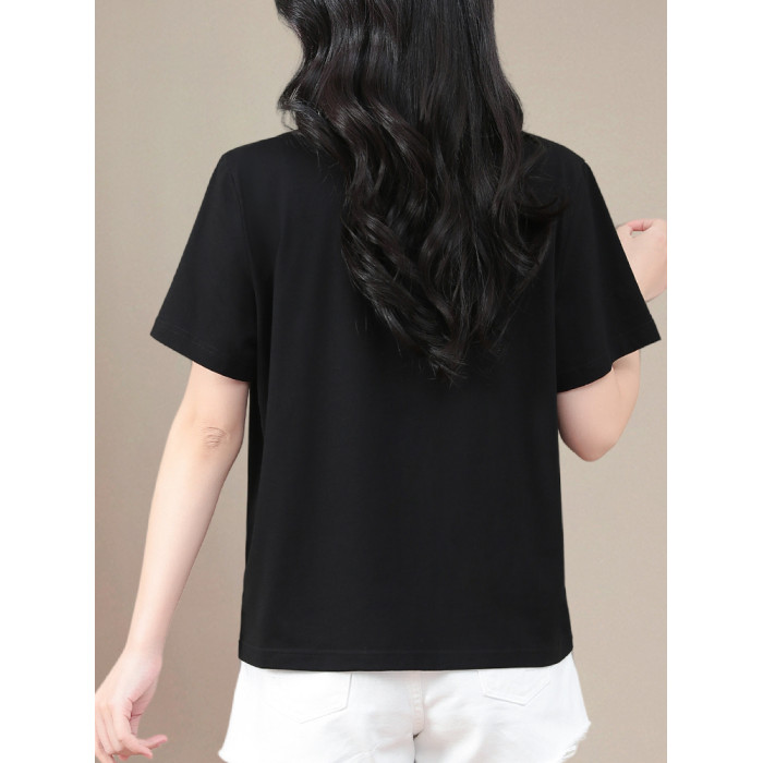 中年媽媽夏裝短袖女t恤洋氣加肥加大碼寬松遮肚顯瘦減齡純棉上衣