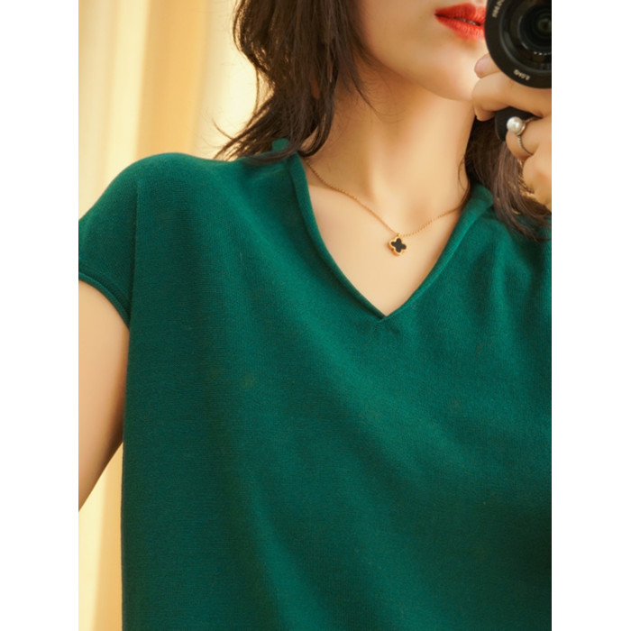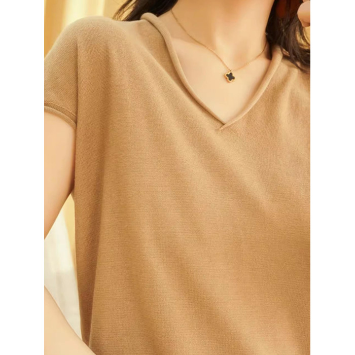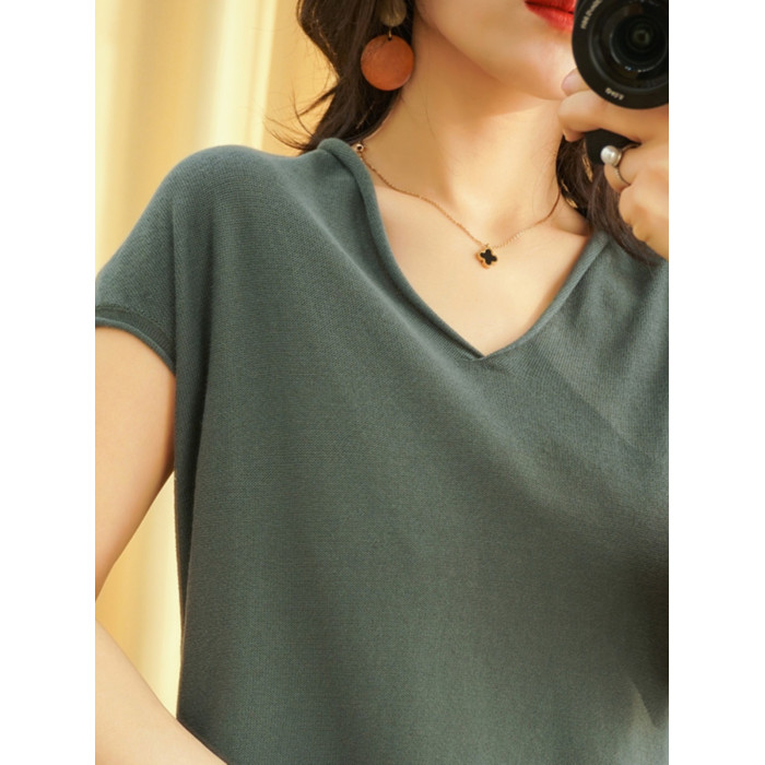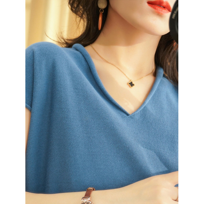 夏季新款純棉短袖女t恤寬松內搭v領套頭韓版假帽透氣百搭針織上衣