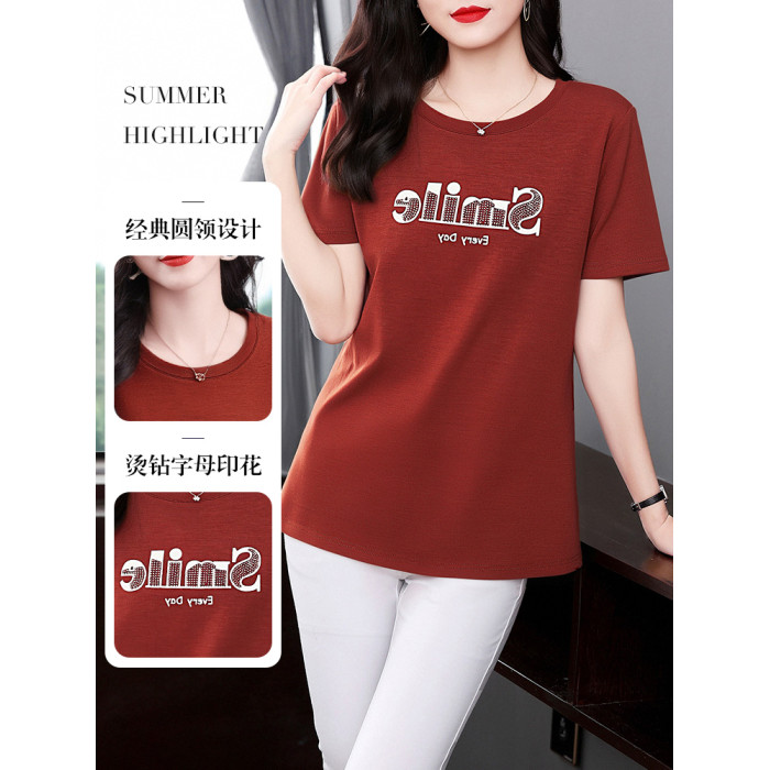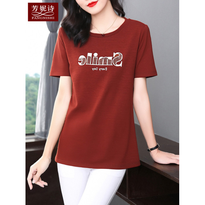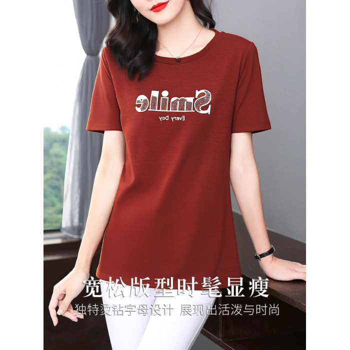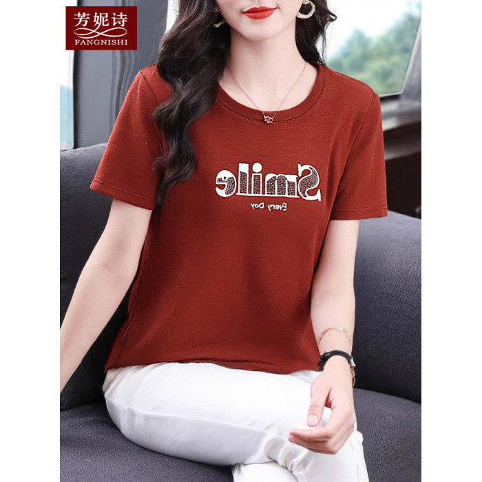 中長款短袖女士t恤2025年夏季新款純棉半袖女裝大碼寬松上衣減齡