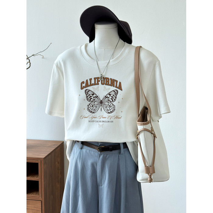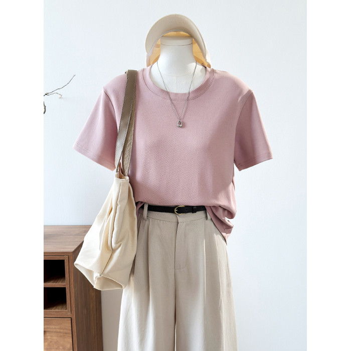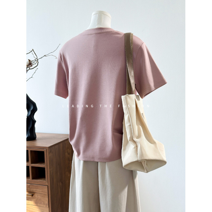 全棉粉色正肩短袖女t恤2025新款夏季穿搭體恤高級感減齡女士上衣