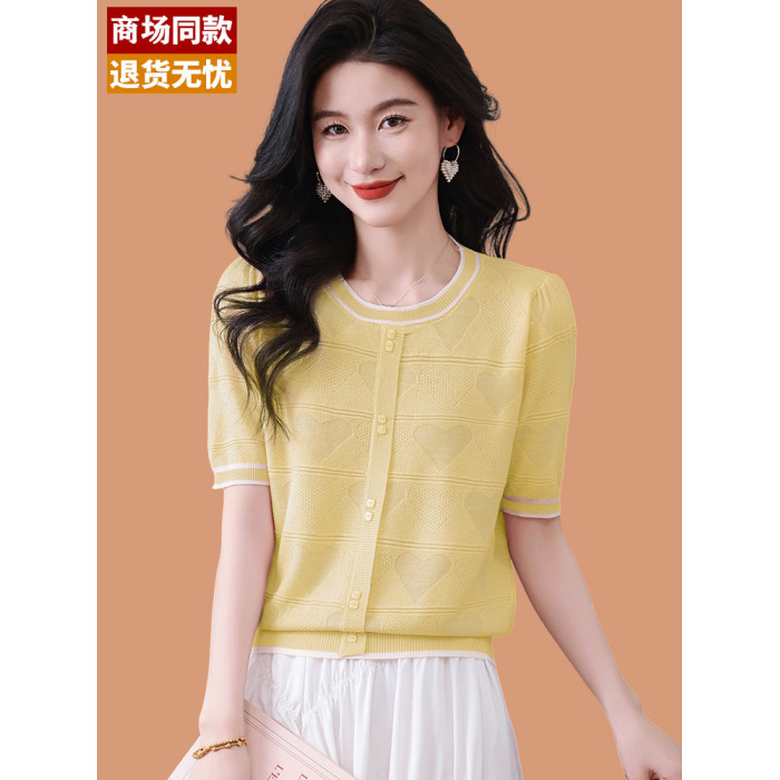 小雞黃短袖女t恤2025新款夏季薄款桑蠶絲漂亮小衫冰絲上衣配裙子