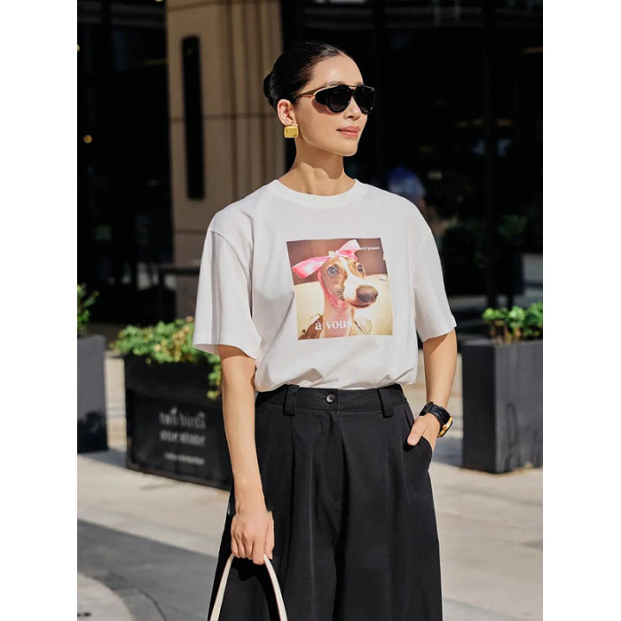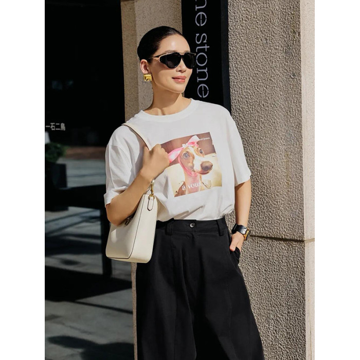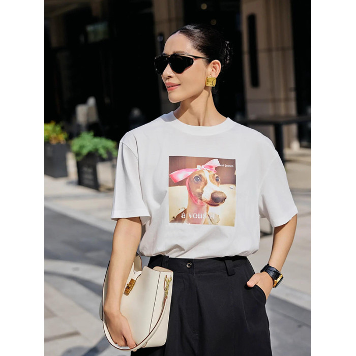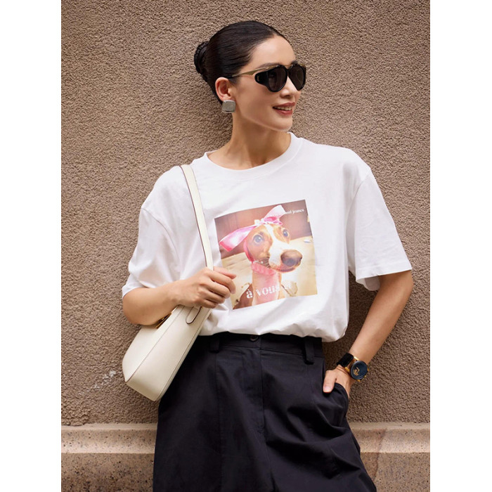 Mondis白色蝴蝶結小馬印花女t恤短袖2025新款夏季高級感小衆上衣