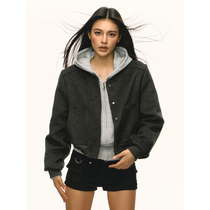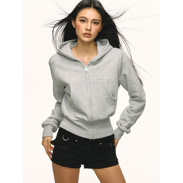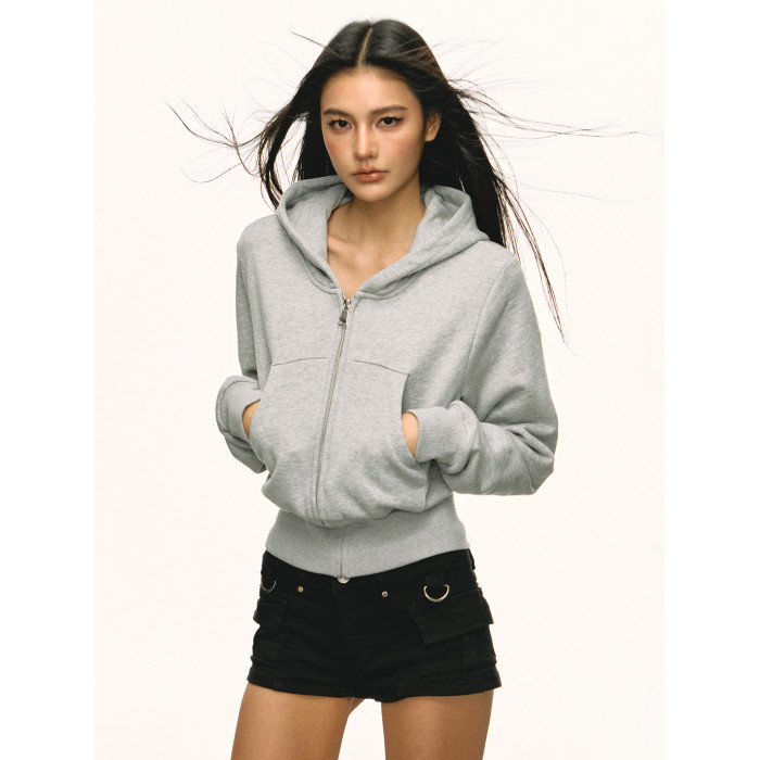 Aaisup灰色短款運動收腰連帽衛衣女2025春秋新款百搭拉鍊開衫外套